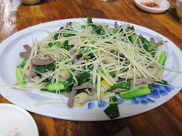 最喜歡把腸子、下水、薑絲、韭菜混在一起沾點鹹湯吃,口感很多樣,雖只是很簡單的鹹湯味,卻很美味,也很令人想念!